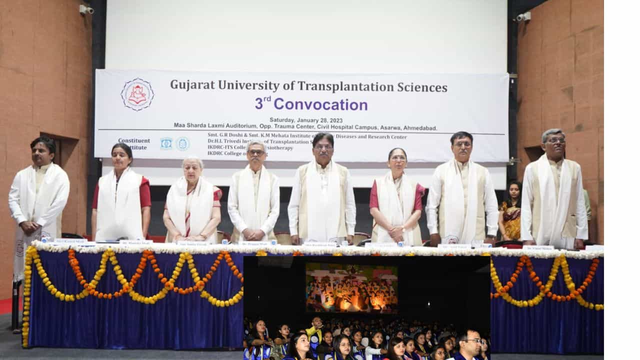 ગુજરાતના આરોગ્ય મંત્રી ઋષિકેશ પટેલની ઉપસ્થિતિમાં અમદાવાદ સિવિલ મેડિસિટીમાં આવેલી ગુજરાત યુનિવર્સિટી ઓફ ટ્રાન્સપ્લાન્ટ સાયન્સીસ(GUTS)નો ત્રીજો પદવીદાન સમારંભ સંપન્ન થયો હતો. જેમાં GUTSના વાઇસ ચાન્સેલર અને SOTTOના કન્વીનર ડૉ. પ્રાંજલ મોદી સહિત સિવિલ મેડિસિટીની વિવિધ હોસ્પિટલ અને કૉલેજના ડાયરેક્ટર, ડીન અને સુપ્રીટેન્ડેન્ટઓએ ઉપસ્થિત રહ્યા હતા.