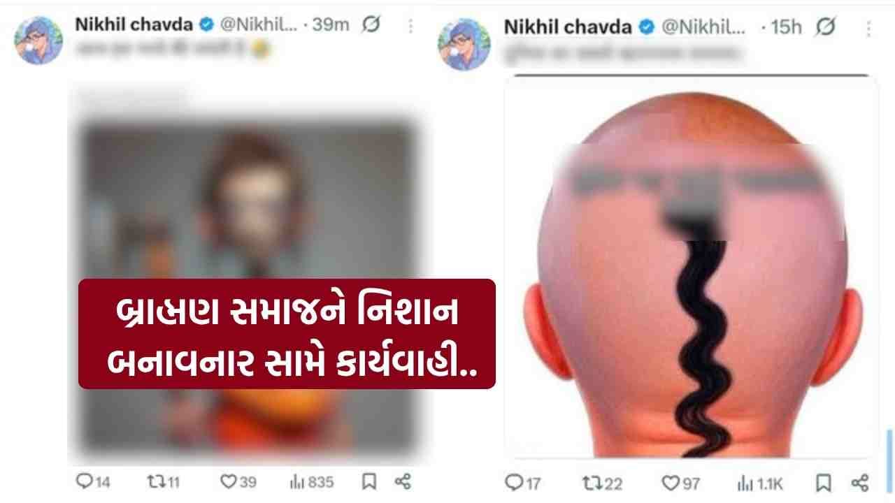 આક્ષેપ છે કે Nikhil Chavda નામના યુઝરે પોતાના X હેન્ડલ પરથી બ્રાહ્મણ સમાજને નિશાન બનાવી અતિ અપમાનજનક ભાષા અને કાર્ટૂન પોસ્ટ કર્યા. કેટલાક પોસ્ટમાં તો એવી શબ્દાવલીનો ઉપયોગ થયો હોવાનું કહેવાય છે, જેને સીધો ધાર્મિક ભાવનાઓ પર પ્રહાર માનવામાં આવી રહ્યો છે. વધુમાં, તેણે Gulagiri જેવી પુસ્તકોનો સહારો લઈને પોતાની વિચારધારા આગળ ધપાવવાનો પ્રયાસ કર્યો, જેને લઈને વિવાદ વધુ ઉગ્ર બન્યો.