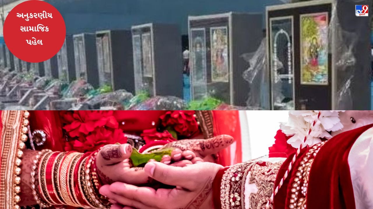 દરેક યુગલને સમાજ તરફથી 10 ગ્રામ સોનાની લગડી 200 ગ્રામની ચાંદીની પાયલ બે ચાંદીના સિક્કા 4 સોનાની ચૂની ફ્રીઝ ઘરઘંટી LED ટીવી વોશિંગ મશીન તિજોરી અન્ય ઘરખરીની વસ્તુઓ