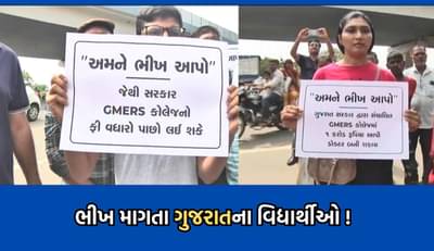 રાજ્યભરની GMERS (ગુજરાત મેડિકલ એજ્યુકેશન એન્ડ રિસર્ચ સોસાયટી) મેડિકલ કોલેજોમાં ગત 28મી જૂને સરકાર દ્વારા રાતોરાત 88 ટકા જેટલો ફી વધારો ઝીંકી દેવામાં આવ્યો હતો. જે બાદ વિદ્યાર્થીઓએ આકરો વિરોધ પ્રદર્શિત કરતા સરકારે ઝુકવુ પડ્યુ હતુ અને વિદ્યાર્થીઓની રજૂઆતને ધ્યાને લઈને GMERS કોલેજોની ફીમાં ઘટાડો કર્યો છે. જો કે આ ફી ઘટાડા બાદ પણ કોલેજોની ફી વધારે હોવાની વિદ્યાર્થીઓની રજૂઆત છે જેને લઈને સોલામાં આવેલી GMERS મેડિકલ કોલેજ બહાર વિદ્યાર્થીઓ અને તેમના વાલીઓ હાથમાં કટોરા લઈને ભીખ માગી સરકાર સામે વિરોધ કરતા જોવા મળ્યા. વિદ્યાર્થીઓના આક્ષેપ છે કે સરકાર પાસે સરકારી મેડિકલ ચલાવવાના પૈસા નથી. આથી ભીખ માગી સરકારને કોલેજ ચલાવવા માટે ભીખ આપવાની માગ કરતા તેઓ જોવા મળ્યા.