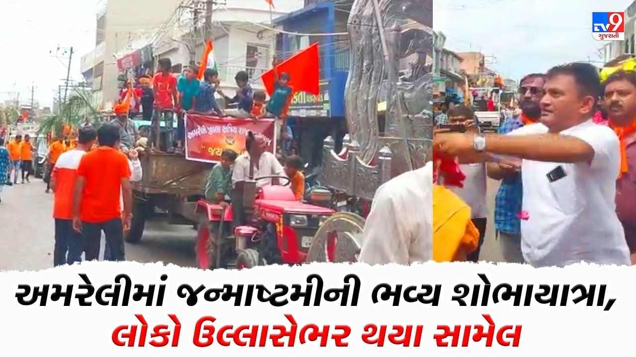 અમરેલીમાં નીકળેલી શોભાયાત્રાના કોંગ્રેસ નેતા પરેશ ધાનાણીએ (Paresh Dhanani) પુષ્પથી વધામણા કર્યા હતા. દર વર્ષની જેમ અમરેલી શહેરમાં પણ જન્માષ્ટમી નિમિતે રાજમાર્ગો પર રથયાત્રા પસાર થઈ હતી. અહીં વિવિધ સંસ્થા અને રાજકીય અગ્રણીઓ જોડાયા હતા.