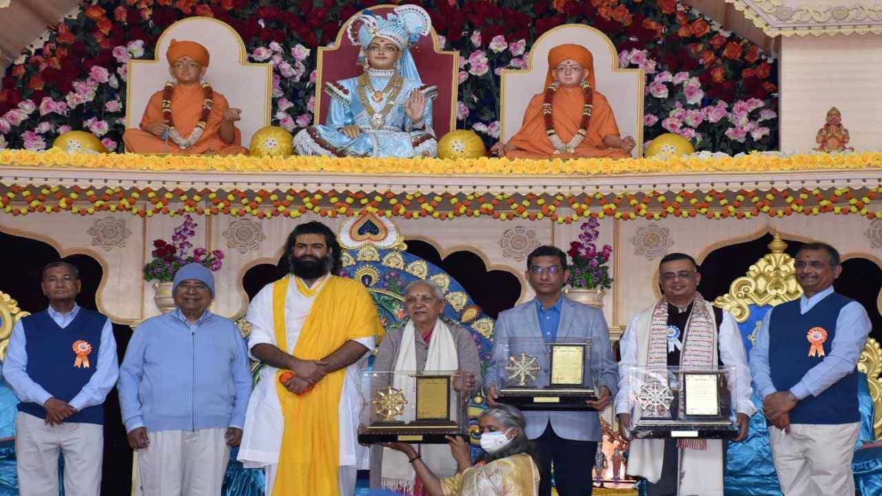 ANAND : અનુપમ મિશન, મોગરી દ્વારા સ્વામિનારાયણ મંદિર, કળશ મહોત્સવ નિમિત્તે ઉત્તરપ્રદેશના રાજ્યપાલ અને ગુજરાતના પૂર્વ મુખ્યમંત્રી આનંદીબેન પટેલ (Anandiben Patel) , શ્વસનતંત્રના રોગના નિષ્ણાત ડો. પાર્થિવ મહેતા, કરોડરજ્જુ નિષ્ણાત ડો.ભરતભાઈ દવેને આજે પૂ.જશભાઈ સાહેબ, વૈષ્ણવાચાર્ય શ્રી વ્રજરાજકુમારજી મહારાજના હસ્તે શાલીન માનવરત્ન સન્માનથી (Shaleen Manvaratna Sanman) અલંકૃત કરવામાં આવ્યા હતા.