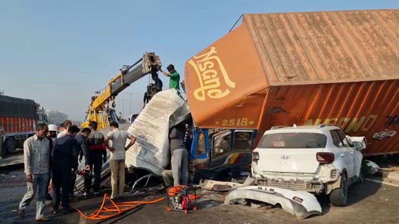Ankleshwar : હાઇવે ઉપર 6 વાહનો વચ્ચે અકસ્માત, ટ્રકમાં 2 લોકો ફસાતા 3 કલાકના રેસ્ક્યુ ઓપરેશન બાદ જીવિત બહાર કઢાયા,જુઓ વિડીયો