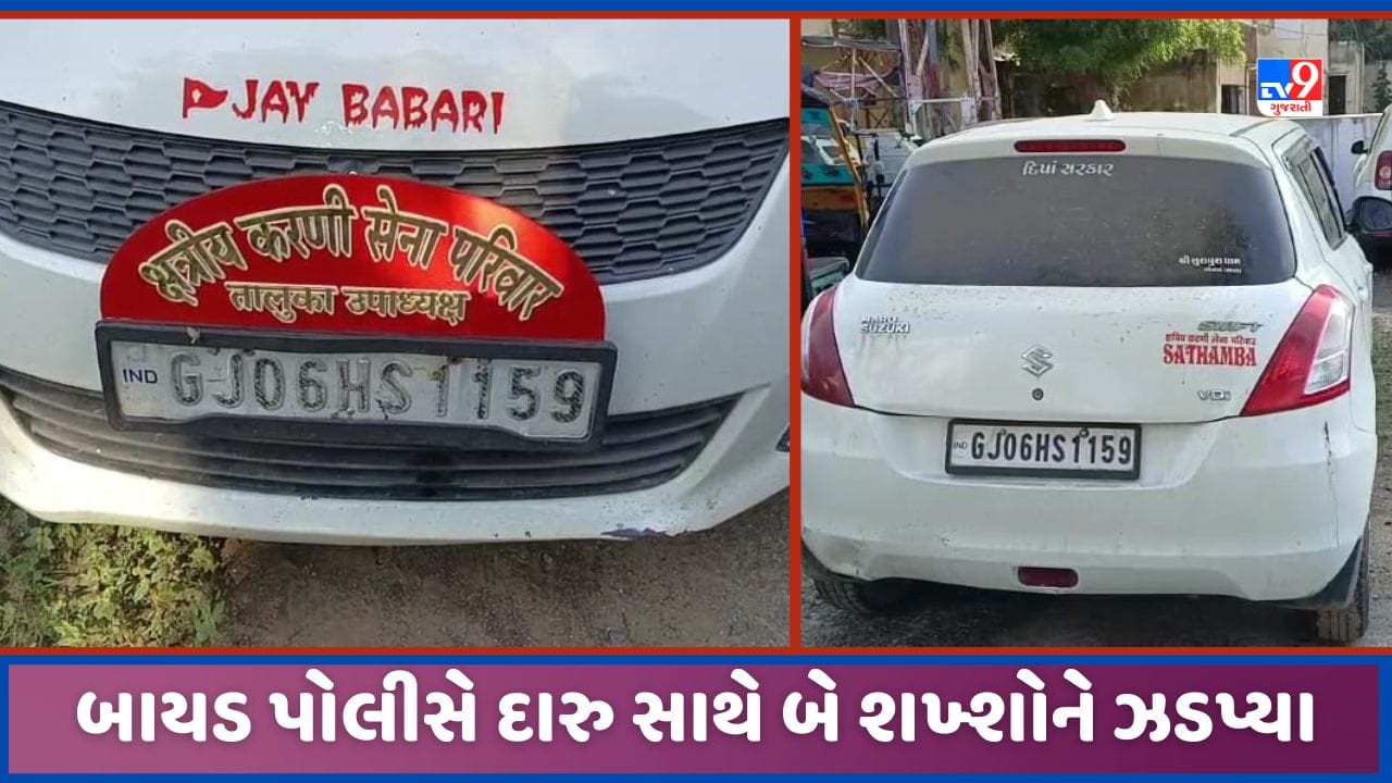 Aravalli: ક્ષત્રિય કરણીસેના તાલુકા ઉપાધ્યક્ષ લખેલી કારમાંથી દારુનો જથ્થો ઝડપાયો, 2 શખ્શોની કરાઈ ધરપકડ