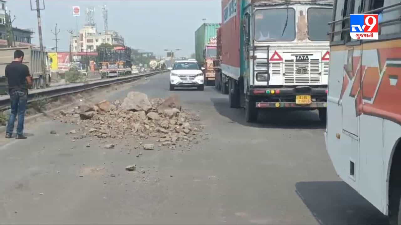 Bharuch Video : પોલીસે જાહેર કરેલી માર્ગદર્શિકાની ઐસીતૈસી, ભરૂચ – દહેજ રોડ ઉપર ટ્રકમાંથી પથ્થર પડ્યાં