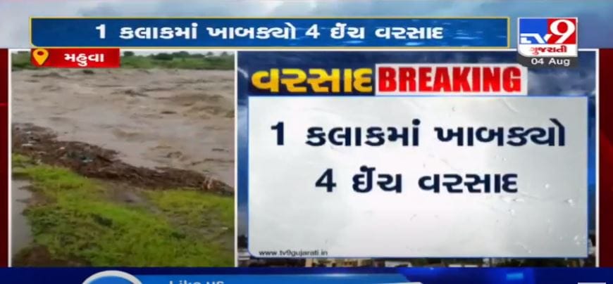 VIDEO: 1 કલાકમાં ખાબક્યો 4 ઈંચ મુશળધાર વરસાદ, મહુવાના છાપરી ગામ અને આસપાસના વિસ્તારોમાં બારે મેઘ ખાંગા