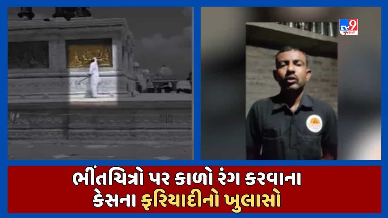 બોટાદમાં શનિવારે કિંગ ઓફ હનુમાનની પ્રતિમાના નીચે લગાવેલા ભીંતચિત્રો પર નજીકના જ ગામના એક રહેવાશી હર્ષદ દેસાઇએ કાળો રંગ કરી દીધો હતો. જે પછી વિવાદ વકર્યો હતો. ત્યારે આ કાળો રંગ લગાવવાના કેસમાં ફરિયાદ કરનાર ભુપત ખાંચરે વીડિયો બનાવી મોટો ખુલાસો કર્યો છે. ભુપત ખાંચરેએ વીડિયોમાં જણાવ્યુ કે હું હનુમાનજી મંદિરે સિક્યુરિટી ગાર્ડ તરીકે ફરજ બજાવું છું. જે દિવસે ભીત ચિત્રો કલર કરવાની ઘટના બની ત્યારે મારી ડ્યુટી ત્યાં જ હતી. બનાવ બન્યાને થોડીવાર પછી મને ઓફિસમાં બોલાવી પૂછ્યુ કે તમે ત્યાં જ હતા. ત્યાર બાદ ઓફિસમાં એક કાગળ ઉપર સહિ કરાવી હતી. સોશિયલ મીડિયાના માધ્યમથી મને ખબર પડી કે મને ફરીયાદી બનાવ્યો છે.