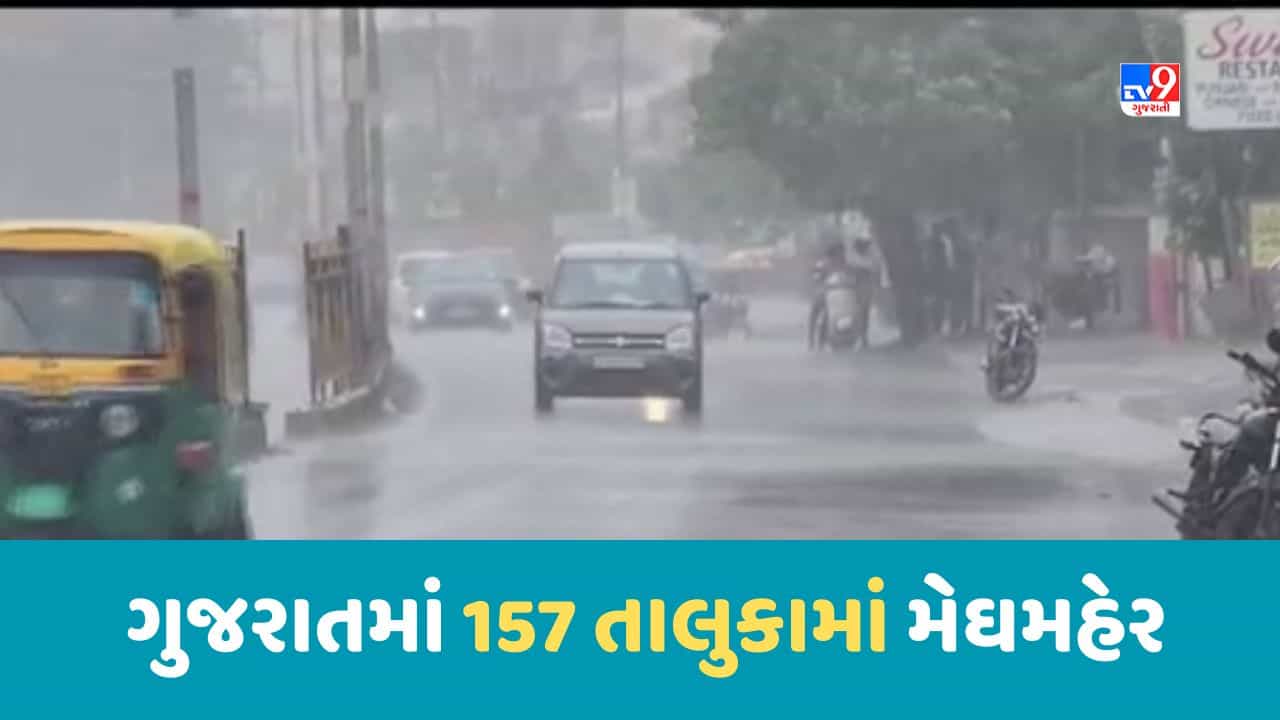 Monsoon 2023 : રાજ્યમાં વરસાદી માહોલ યથાવત્ જોવા મળી રહ્યો છે. ગુજરાતમાં 24 કલાકમાં કુલ 157 તાલુકામાં વરસાદ (Rain) વરસ્યો છે. 47 તાલુકામાં એક ઇંચથી લઇને ચાર ઇંચ સુધીનો વરસાદ વરસ્યો છે. સૌથી વધુ જૂનાગઢના (Junagadh) ભેંસાણમાં 4.5 ઈંચ વરસાદ ખાબક્યો છે. તો પાટણમાં 4 ઈંચ વરસાદ વરસ્યો છે. સૌરાષ્ટ્ર-દક્ષિણ ગુજરાતમાં પણ નોંધપાત્ર વરસાદ વરસ્યો છે.