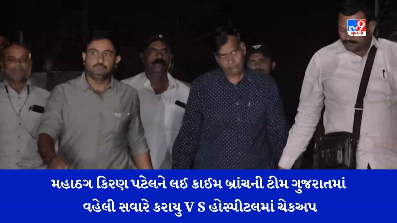 ઠગ કિરણ પટેલને ક્રાઇમ બ્રાંચથી મેડિકલ ચેકઅપ માટે વી.એસ હોસ્પિટલ લાવવામાં આવ્યો હતો જ્યાં તેનું સંપૂર્ણ મેડિકલ અને કોવિડ ટેસ્ટ પણ કરાવવમાં આવ્યો છે. જોકે અત્યાર સુધી PMO ઓફિસર તરીકે ઓળખ આપી રોફ જમાવતો કિરણ પટેલ મોઢું નીચું રાખી ચાલતો જોવા મળ્યો હતો.