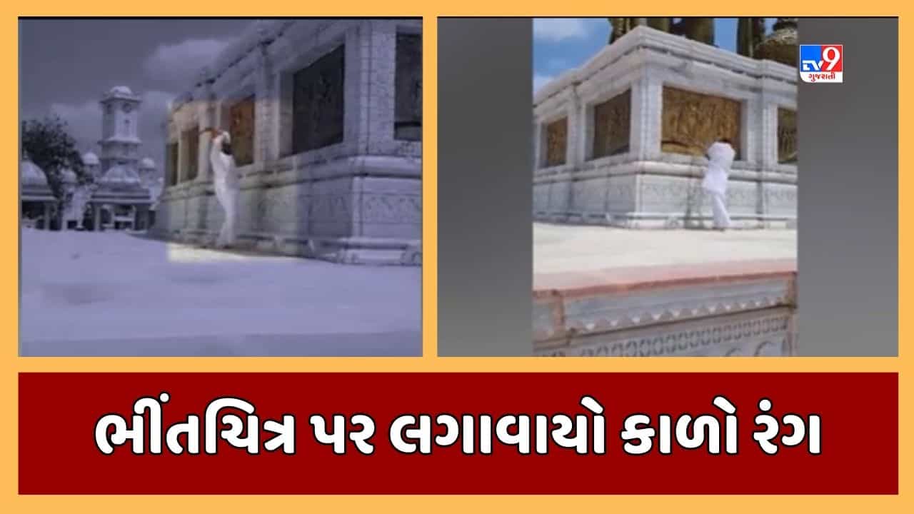 સાળંગપુર મંદિરમાં કિંગ ઓફ સાળંગપુરનૂ મૂર્તિ નીચે લગાવાયેલા હનુમાનજીના ભીંતચિંત્રને લઇને છેલ્લા એક સપ્તાહ કરતા વધુ સમયથી વિવાદ ચાલી રહ્યો છે. ત્યારે બોટાદના સાળંગપુર મંદિરમાં પહેલેથી જ પોલીસ સુરક્ષા વ્યવસ્થા ગોઠવી દેવામાં આવેલી છે. તેમ છતા આજે એક વ્યક્તિ અચાનક કિંગ ઓફ સાળંગપુરની મૂર્તિ પાસે પહોંચી જાય છે અને લગાવેલા ભીંતચિત્રો પર કાળો રંગ લગાવે છે એટલુ જ નહીં તેના પર લાકડીથી પ્રહાર પણ કરે છે. લાકડીથી પ્રહાર કરતા ભીંતચિત્રોને નુકસાન થયુ હોવાનું પણ સામે આવ્યુ છે.
