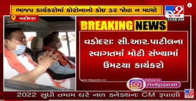વડોદરામાં ભાજપ પ્રદેશ પ્રમુખ સી.આર.પાટીલના સ્વાગતમાં મોટી સંખ્યામાં કાર્યકરો ઉમટી પડયા હતા. જોકે, સ્વાગત કાર્યક્રમમાં ભાજપ કાર્યકરોને કોરોનાના નિયમો ભૂલ્યા હતા. આ સ્વાગત કાર્યક્રમમાં મોટી સંખ્યામાં ભીડ એકઠી કરવામાં આવી હતી. જાણે કે ભાજપના કાર્યકરોમાં કોરોનાનો કોઇ ડર જોવા ન મળ્યો હતો. અહીં નોંધનીય છેકે લગ્ન સમારંભમાં 100 લોકોની પરવાનગી પણ સ્વાગત કાર્યક્રમમાં કોઇ નિયમ નહીં તે અહીં સ્પષ્ટ નજરે પડયું હતું.