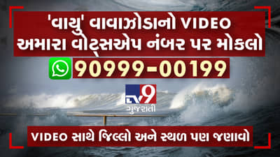 11 જેટલા જિલ્લાઓમાં વાયુ વાવાઝોડાની અસર થવાની છે. જેમાં વેરાવળ અને પોરબંદર પર સૌથી વધારે ખતરો ઉભો થઈ શકે છે. જેને લઈ તંત્ર દ્વારા તમામ સુરક્ષાની વ્યવસ્થા ઉભી કરી દેવાઈ છે. જો તમે કોઈપણ મુશ્કેલીમાં હોઈ અને તંત્ર સાથે સંપર્ક ન સાધી શકો તો અમને પણ વોટ્સઅપ વીડિયો દ્વારા તમે સંપર્ક કરી શકો છો. સાથે તમે તુફાનનો વીડિયો પણ અમને વોટ્સએપ પર મોકલી શકો છો.