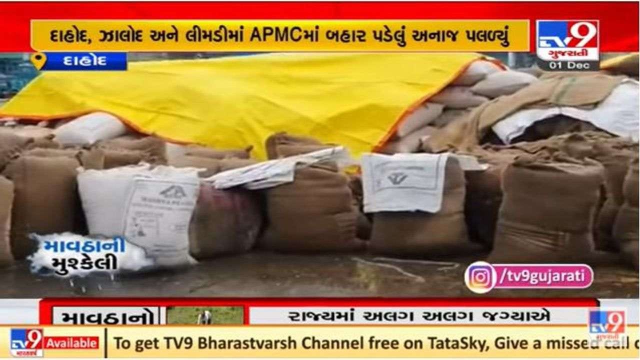 દાહોદ જિલ્લામાં માવઠાથી નુકશાન, એપીએમસીમાં બહાર પડેલું અનાજ પલળી ગયુ