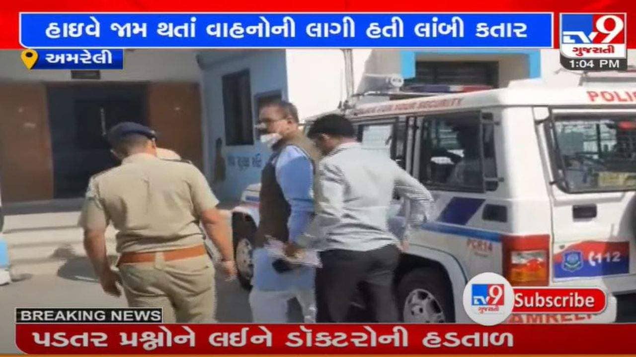 અમરેલી-બાબરા રોડ પર ચક્કાજામ, ધારાસભ્ય વીરજી ઠુમ્મર તથા કાર્યકર્તાઓની અટકાયત