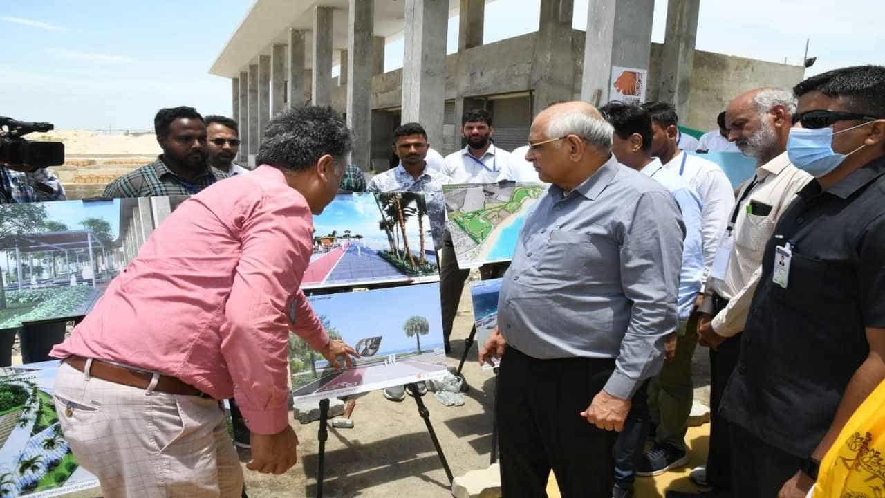 તેમણે શિવરાજપૂર ખાતે અંદાજે રૂ.23.43 કરોડના ખર્ચે ફેઇઝ-1 અંતર્ગત અરાઈવલ પ્લાઝા, સાઇકલ ટ્રેક, પ્રોમોનેડ, પાથ-વે, પીવાના પાણી, ટોઇલેટ બ્લોક સુવિધા વગેરેના જે કામો હાથ ધરાવાના છે તે પૈકીના પ્રગતિ હેઠળના કામોની કામગીરીનું નિરીક્ષણ કર્યુ હતું. પ્રવાસન વિભાગ દ્વારા શિવરાજ પુર બીચ ખાતે બે ફેઇઝમાં અંદાજે રૂપિયા 135 કરોડના કામો સાથે આ પ્રોજેક્ટ્સ હાથ ધરાઈ રહ્યા છે.