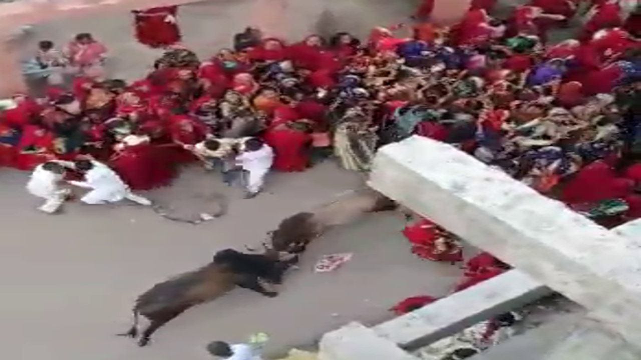 Stray Cattle Menace ;many injured in two bulls fight in #Dwarka #Gujarat #TV9News pic.twitter.com/oCkI3GGGJJ