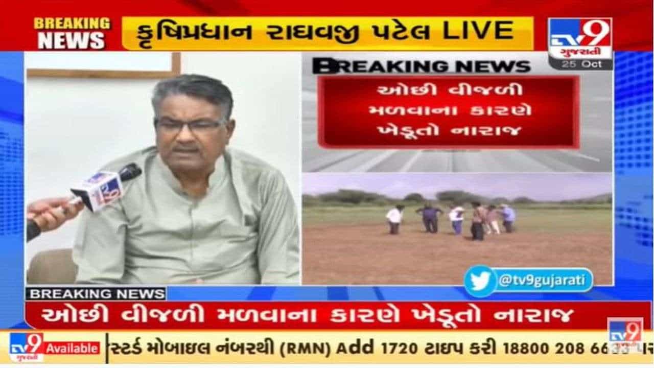 ગુજરાતના ખેડૂતોને આઠ કલાક વીજળી આપવામાં આવી રહી હોવાનો કૃષિ મંત્રી રાઘવજી પટેલનો દાવો