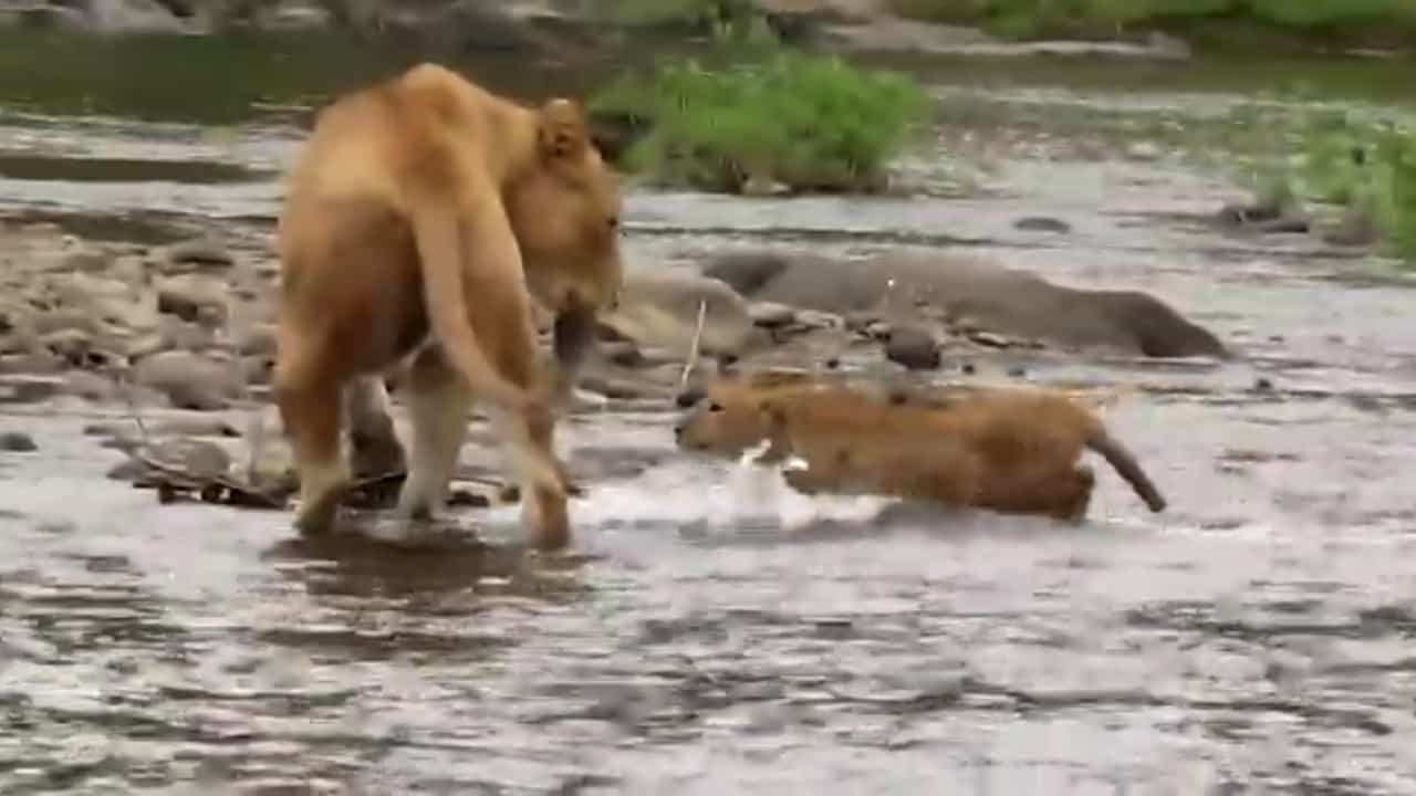 ચોમાસાની ઋતુમાં ગીર સોળે કળાએ ખીલેલું દેખાય છે અને તેમાં પણ ગીરના રાજ પરિવાર સમા સિંહ પરિવારને જોવાનો આનંદ કંઈક અલગ જ હોય છે. સિંહ પ્રેમીઓ અને પ્રકૃતિ પ્રેમીઓને રોમાંચિત કરતા આવા દૃશ્યો સામે આવ્યા છે. ગીર સોમનાથ જિલ્લામાંથી કે જ્યાં એક સિંહ પરિવાર નદી પસાર કરી રહ્યો છે. ગીરમાં ભારે વરસાદને કારણે જળબંબાકાર સર્જાયો છે. તમામ નદી નાળા પાણીથી છલકાયા છે. ત્યારે ગીરસોમનાથમાં નદીના વહેણને પસાર કરતી 3 સિંહણ અને એક નાના સિંહ બાળનો વીડિયો સોશ્યલ મીડિયા ઉપર ધુમ મચાવી રહ્યો છે. જેમાં નાના સિંહબાળના પાણીમાં દોડતા મસ્તીખોર અંદાજને જોઈને કોઈપણ વ્યક્તિ મોહિત થઈ જાય.