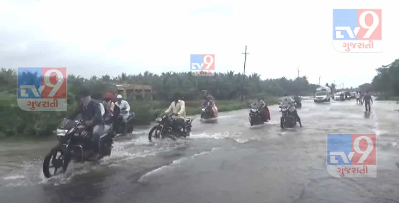 છેલ્લા બે અઠવાડિયાથી ગીર સોમનાથ જિલ્લામાં ચાલી રહેલ વરસાદની હેલી ક્યાંકને ક્યાંક મેઘ મહેરમાંથી મેઘકહેરમાં પલટાઈ રહી છે. જિલ્લાની તમામ નદીઓમાં પૂર આવ્યા છે, જેને કારણે સોમનાથ-ભાવનગર નેશનલ હાઇવે પર પણ પુરના પાણી ફરી વળ્યાં છે. ત્યારે 1.5 થી 2 ફૂટ પુરના પાણી અને રસ્તા પર પહેલેથી મોજુદ એકથી દોઢ ફૂટના ખાડાએ જીવલેણ સમન્વય સાબિત થઈ શકે છે. વાહનચાલકોનો ટ્રાફિક જામ થતાં નજીકના ગામના લોકોએ ટ્રાફિક ક્લિયર કર્યો હતો. છતાં ઘટના સ્થળે સ્થિતિ જોવાની કોઈપણ સરકારી તંત્ર કે નેશનલ હાઈવે ઓથોરીટીએ દરકાર લીધી નહોતી.