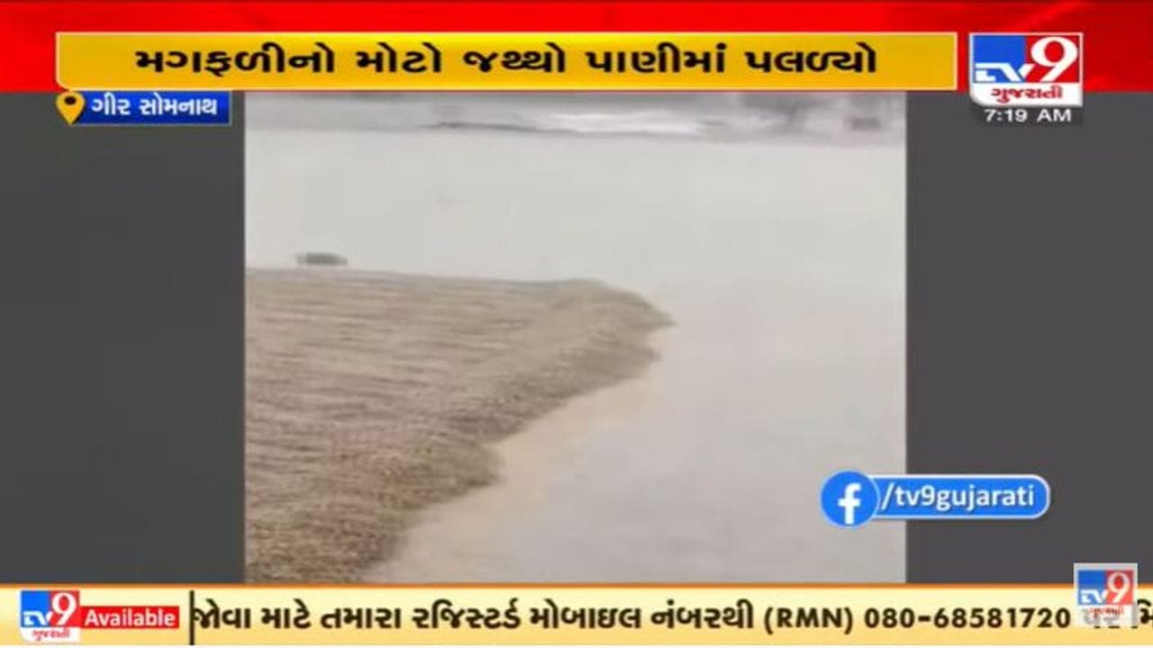 કોડીનારમાં અચાનક વરસાદથી માર્કેટ યાર્ડ બહારનો મગફળીનો જથ્થો પાણીમાં પલળ્યો