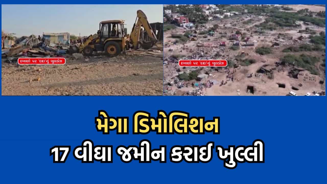 સોમનાથમાં ફરી એકવાર તંત્ર દ્વારા ગેરકાયદે ઉભા કરી દેવાયેલા દબાણો પર તંત્રની દબાણ શાખાની ટીમ ત્રાટકી હતી અને ગેરકાયદે દબાણો પર મેગા ડિમોલિશન કામગીરી કરવામાં આવી હતી. ત્રણ મહિનાની અંદર સતત બીજીવાર અહીં દાદાનું બુલડોઝર ફરી વળ્યુ છે અને સોમનાથ મંદિર આસપાસ કરવામાં આવેલા દબાણો હટાવી જગ્યા ખુલ્લી કરવામાં આવી છે. તંત્રની આ મેગા ડિમોલિશનની કામગીરી દરમિયાન 17 વીઘા જેટલી જમીન ખુલ્લી કરાઈ છે. આ અગાઉ ઓક્ટોબર મહિનામાં કરાયેલા ડિમોલિશન દરમિયાન પણ 27 થી વધુ વેપારના હેતુથી કરાયેલા દબાણો હટાવવામાં આવ્યા હતા.