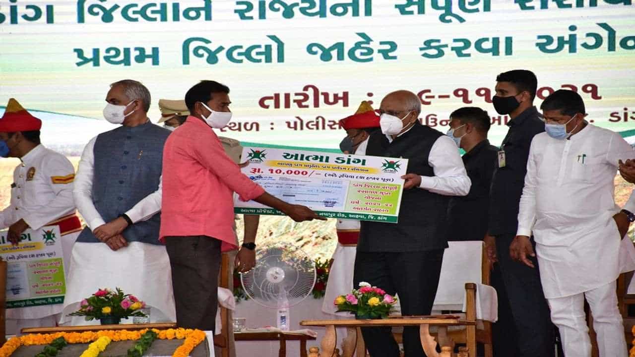 “આપણુ ડાંગ, પ્રાકૃતિક ડાંગ” કાર્યક્રમ દરમિયાન રાજયપાલ આચાર્ય દેવવ્રતજી, અને મુખ્યમંત્રી ભુપેન્દ્ર પટેલના હસ્તે પ્રતિકરૂપે પાંચ ખેડુતોને સહાયના ચેકોનુ વિતરણ કરવા સાથે, ભારત સરકારની FPO યોજના હેઠળ ૩૦૦ ખેડુતોને આ યોજના હેઠળ મેનેજમેન્ટ કોસ્ટ માટે રૂ.૧૮ લાખ, અને રૂ.૨ કરોડની ગેરંટી લોન, “આપણુ ડાંગ, પ્રાકૃતિક ડાંગ વિષયક નવ મિનિટના વિડીયો દસ્તાવેજીકરણનુ લોન્ચિગ, પ્રાકૃતિક ખેત પેદાશોના પ્રદર્શન અને વેચાણ સ્ટોલ, સરદાર પટેલ એવોર્ડ વિજેતા બે ખેડૂત કુટુંબોને એવોર્ડ, અને પ્રમાણપત્ર, તથા પ્રાકૃતિક ખેતી કરતી જિલ્લાની ૩૦૦ બહેનો દ્વારા ૬૦૦ કિલો ચોખા કુપોષિત બાળકો માટે આંગણવાડીઓને અર્પણ કરાયા હતા.