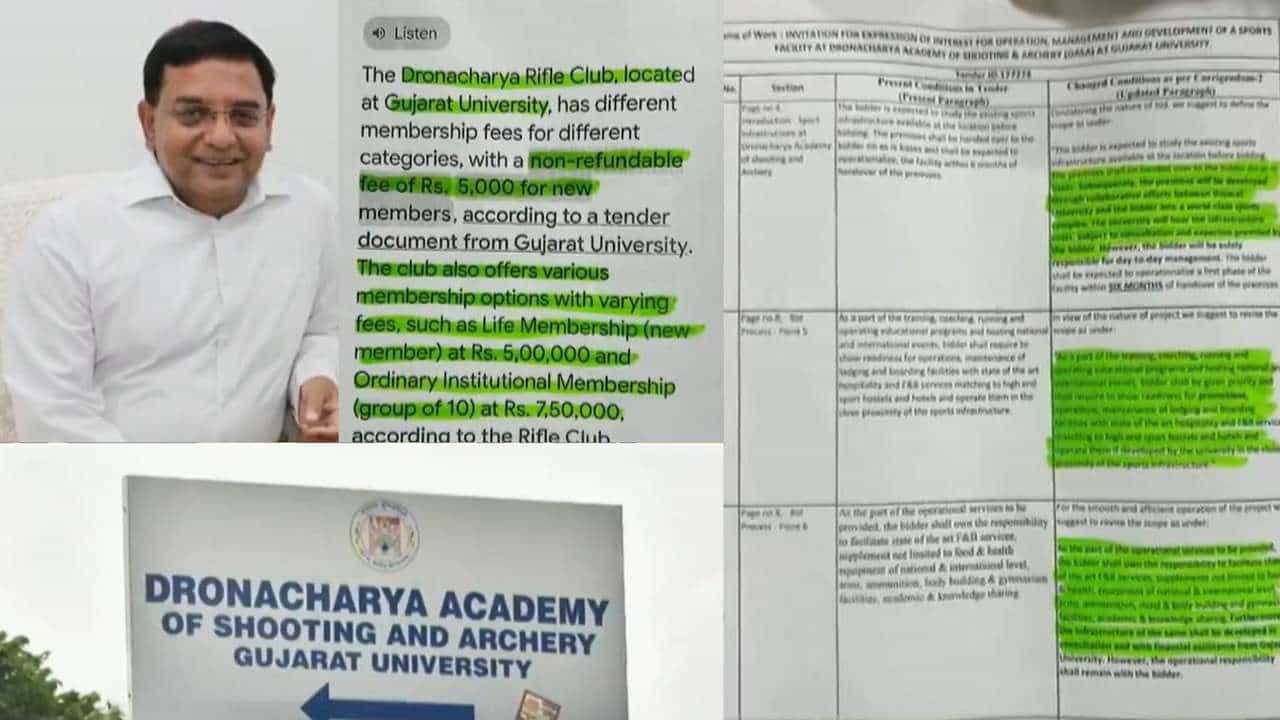એક સમયે કોંગ્રેસના અગ્રણી અને હાલમાં ભાજપમાં રહેલા ગુજરાત યુનિવર્સિટીના સિન્ડિકેટ સભ્ય આશિષ અમીને, પોતાની જ દ્રોણાચાર્ય રાયફલ કલ્બ માટે યુનિવર્સિટીની 500 કરોડની જગ્યા કાયમ માટે મેળવી લીધી હોવાનો આક્ષેપ કોંગ્રેસે કર્યો છે. કોંગ્રેસે જાહેર કર્યું છે કે, આવનારા દિવસોમાં ગુજરાત યુનિવર્સિટી બચાવો આંદોલન છેડવામાં આવશે.