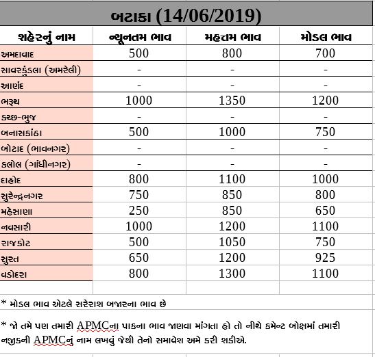મહેસાણામાં બટાકા વેચાયા રૂ.250માં અને ભરૂચમાં વેચાયા રૂ.1350માં, જાણો ગુજરાતની APMCના જુદા-જુદા પાકોના ભાવ