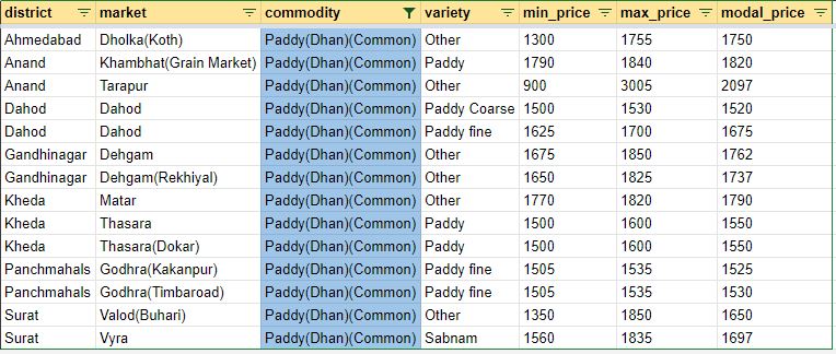 પેડી (ચોખા)ના તા.19-06-2019ના રોજ APMCના ભાવ