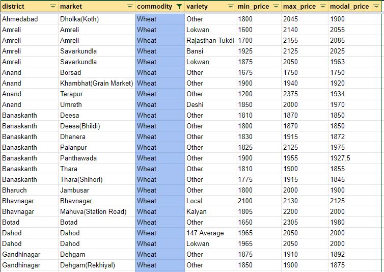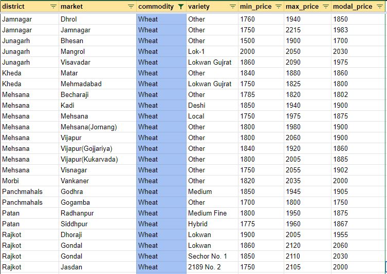 ઘઉંના તા.19-06-2019ના રોજ APMCના ભાવ