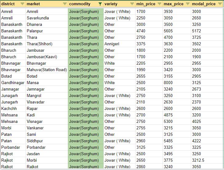 જુવારના તા.19-06-2019ના રોજ APMCના ભાવ