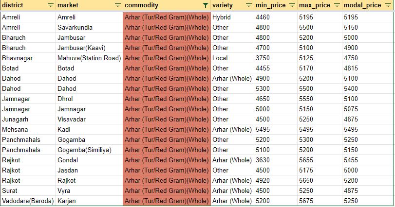 તુવેરના તા.19-06-2019ના રોજ APMCના ભાવ