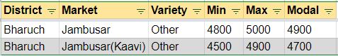 તુવેરના તા.30-06-2019ના રોજ APMCના ભાવ
