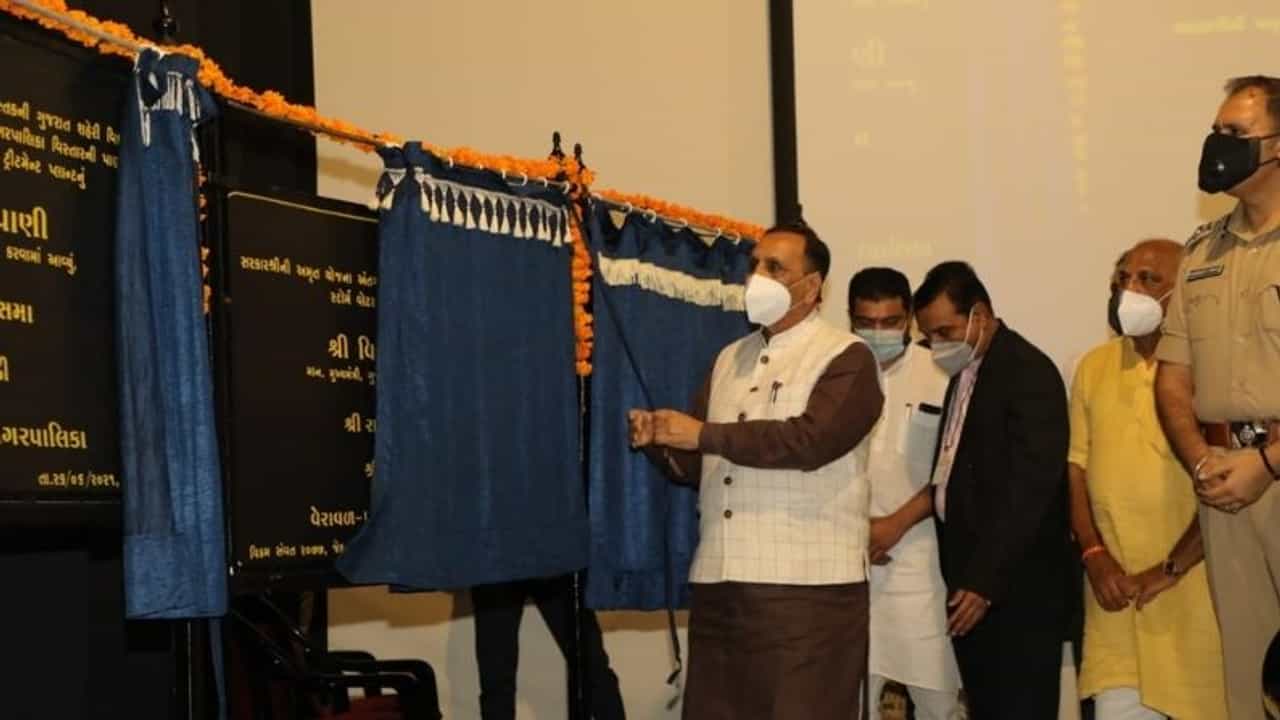 ગુજરાત(Gujarat ) ના મુખ્યમંત્રી વિજય રૂપાણીએ વેરાવળ( Veraval )પાટણ નગરપાલિકા વિસ્તારના બે લાખ જેટલા શહેરી જનોને પીવાનું શુદ્ધ પાણી મળે તે માટે સ્વર્ણિમ જયંતિ મુખ્યમંત્રી શહેરી વિકાસ યોજના અન્વયે રૂપિયા પ.૬૦ કરોડના ખર્ચે નિર્માણ પામેલ ની ૫૩ એમ.એલ.ડી કેપેસીટીના વોટર ટ્રીટમેન્ટ પ્લાન્ટનું લોકાર્પણ કર્યું હતું