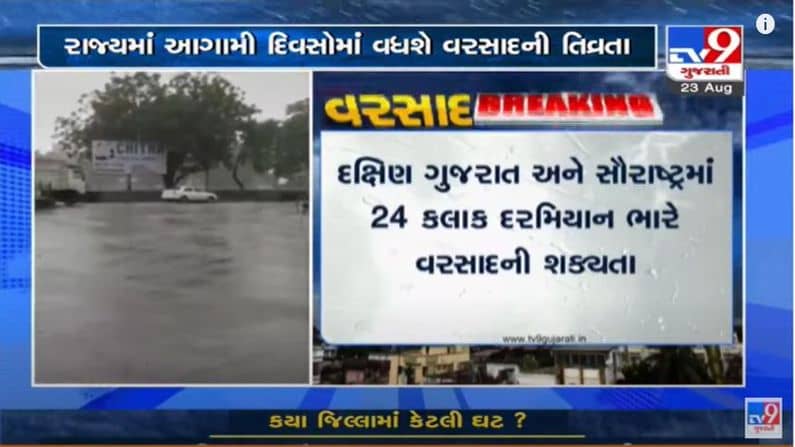 Gujarat : રાજ્યમાં આગામી દિવસોમાં વરસાદની તિવ્રતા વધવાની હવામાન વિભાગે આગાહી કરી છે. આગામી 24 કલાક દરમિયાન રાજ્યમાં ભારે વરસાદની આગાહી કરી છે. દક્ષિણ ગુજરાત અને સૌરાષ્ટ્રમાં 24 કલાક દરમિયાન ભારે વરસાદની શક્યતા છે. આજથી રાજ્યમાં વરસાદનું જોર વધશે તેમ હવામાન વિભાગનું કહેવું છે.