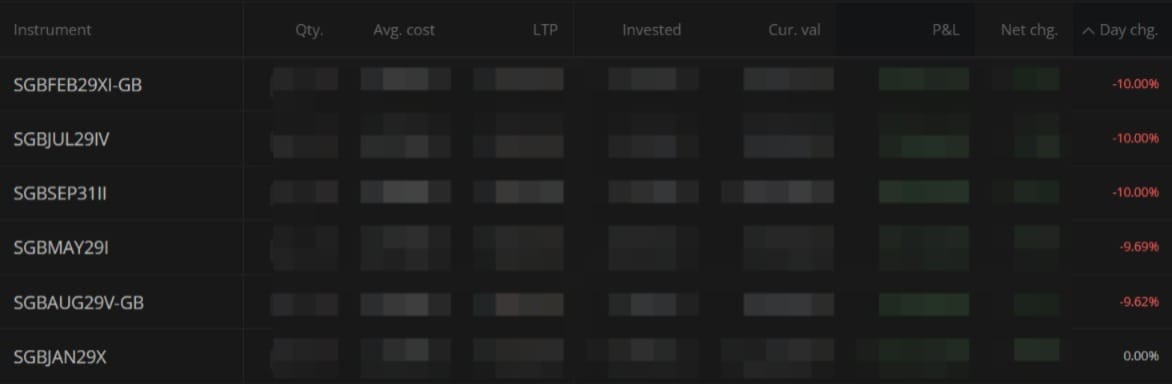 SGB (સોવરેન ગોલ્ડ બોન્ડ) ના ભાવમાં 10% સુધીનો ઘટાડો થયો છે. 2028 થી 2031 શ્રેણીમાં SGB ખરીદવાની શ્રેષ્ઠ તક રહેલી છે.
