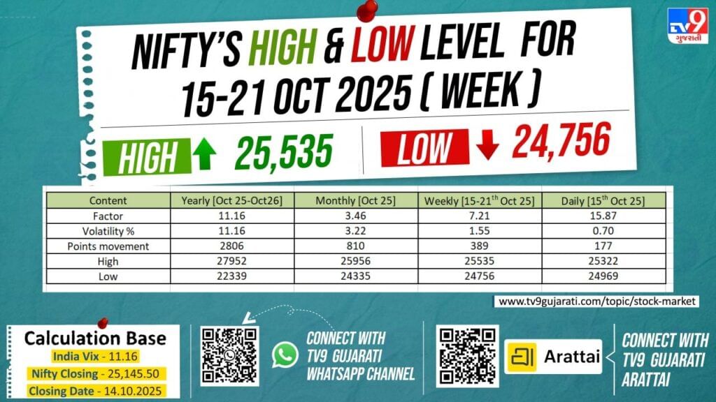 આવતી કાલ 15 ઓક્ટોબરથી 21 ઓક્ટોબર એટલે કે આ અઠવાડિયે નિફ્ટી50 કેવું રહેશે તે અંગે અનુમાન લગાવવામાં આવ્યું છે.