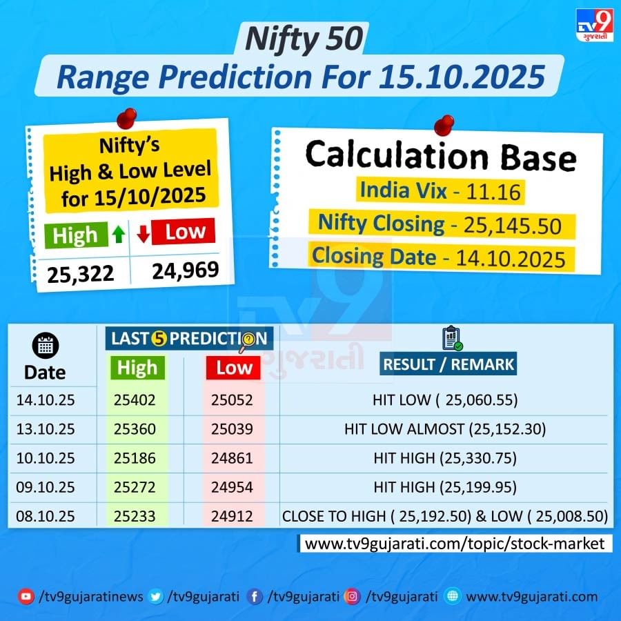 આવતીકાલે 15 ઓક્ટોબરે નિફ્ટી 50માં વધારો થશે કે ઘટાડો? જાણો