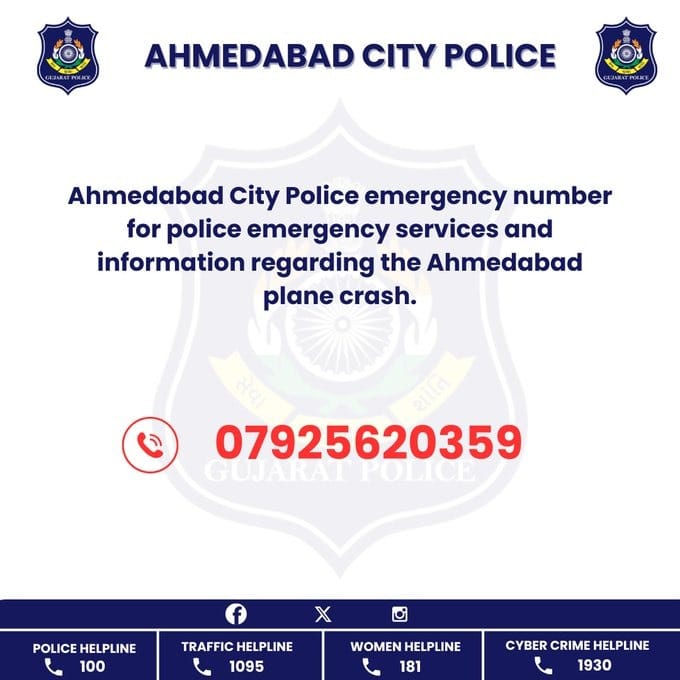 Breaking News: અમદાવાદમાં વિમાન ક્રેશની ઘટના બાદ હેલ્પલાઇન નંબર જાહેર ! આ નબંર પરથી મળશે જાણકારી