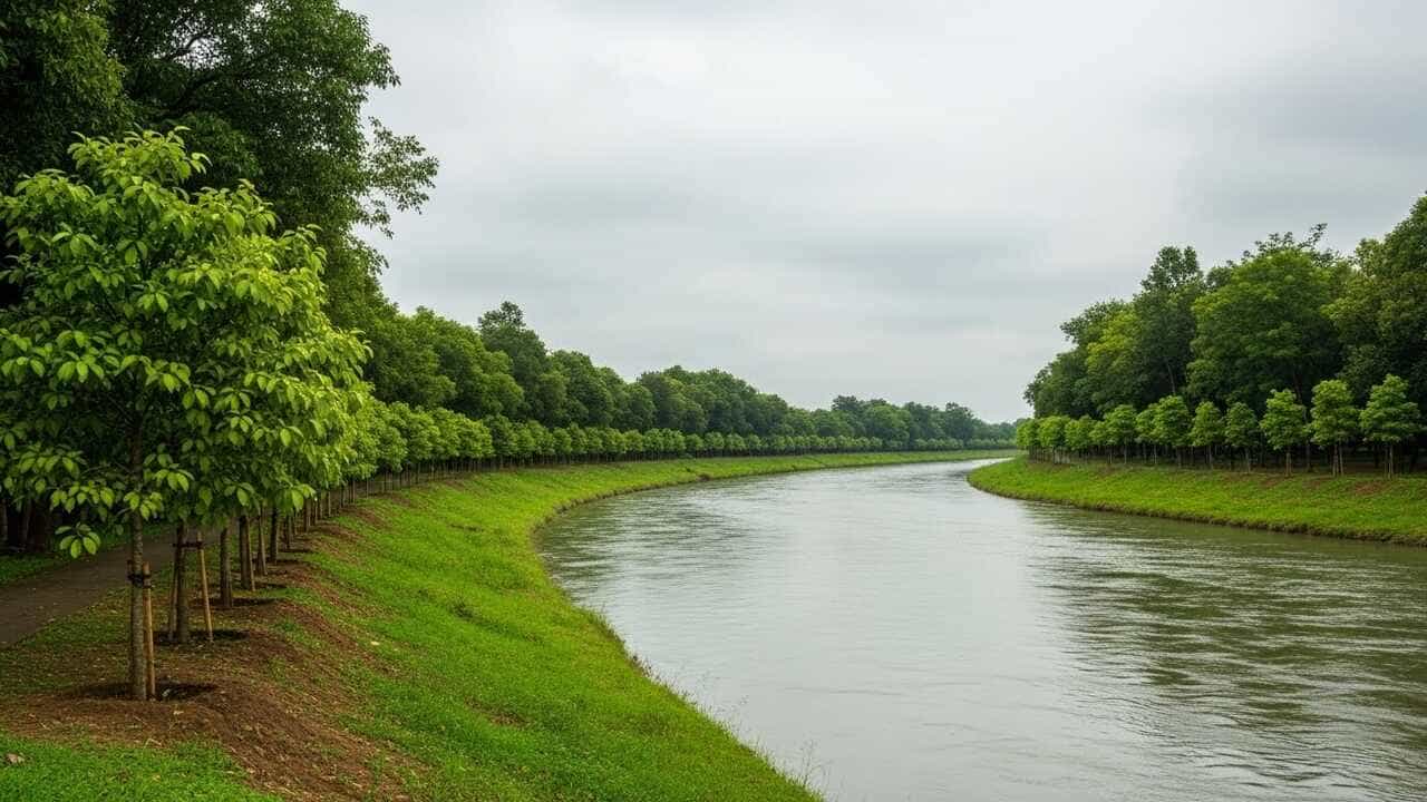 રાજ્યમાં ગ્રીન કવર વધારવા રાજ્યની તમામ 185 નદીના બન્ને કાંઠાના વન સંરક્ષણ તેમજ સંવર્ધનની કામગીરી વન વિભાગને સોંપવામાં આવી છે. જે અંતર્ગત વૃક્ષ ઉછેર ઉપયોગ માટે અગાઉથી જમીનનું સિમાંકન અને GIS મેપિંગ કરીને કાર્યક્ષેત્ર ચોક્કસ કરીને જરૂરિયાતવાળી જમીનની ઓળખ કરવામાં આવશે. જમીનની સ્થિતિ ખાસ કરીને સરકારી જમીન અને વણવપરાયેલી સરકારી જમીનના રેકોર્ડ્સની ચકાસણી કરી વિકાસલક્ષી પ્રાથમિકતાઓ જળવાઈ રહે તે માટે આ જમીનનો ઉપયોગ માત્ર ગ્રીન કવર-વૃક્ષ ઉછેર માટે જ કરવાનો રહેશે. અન્ય કોઇ હેતુ માટે આવી જમીનનો ઉપયોગ ન થાય તે સુનિશ્ચિત કરવાનું રહેશે.