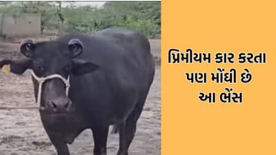 કચ્છની આ કાર કરતાં પણ મોંઘી ભેંસ, કરોડોનો ફાયદો કરાવશે. દ્રશ્યોમાં દેખાતી આ ભેંસ લાખોની ભેંસ છે. કારણ કે સામાન્ય પ્રીમિયમ કાર કરતાં પણ આ ભેંસ મોંઘી છે જેની કિંમત 14,01,000 રૂપિયા છે. કારણ કે આ ભેંસ અસલ બન્ની નસલની હોવાનો દાવો છે. કચ્છની અસલ બન્ની નસલની ભેંસ કચ્છ, ગુજરાત અને સમગ્ર દેશના માલદારી વર્ગમાં માનીતી છે કારણ કે બન્ની નસલની ભેંસ તેના રંગ, રૂપ અને તંદુરસ્તી માટે વખણાય છે. જેને લઈને હવે અસલ બન્ની નસલની લાડકી નામની ભેંસ 14,01,000 રૂપિયામાં વેચાય છે. આટલી ઊંચી રકમમાં ભેંસ વેચાઈ હોય એ ના માત્ર કચ્છ પરંતુ ગુજરાતની પ્રથમ ઘટના છે.