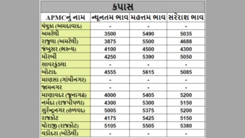 કપાસના તા.20-10-2020ના રોજ APMCના ભાવ રૂ. 4555 થી 5615 રહ્યા.