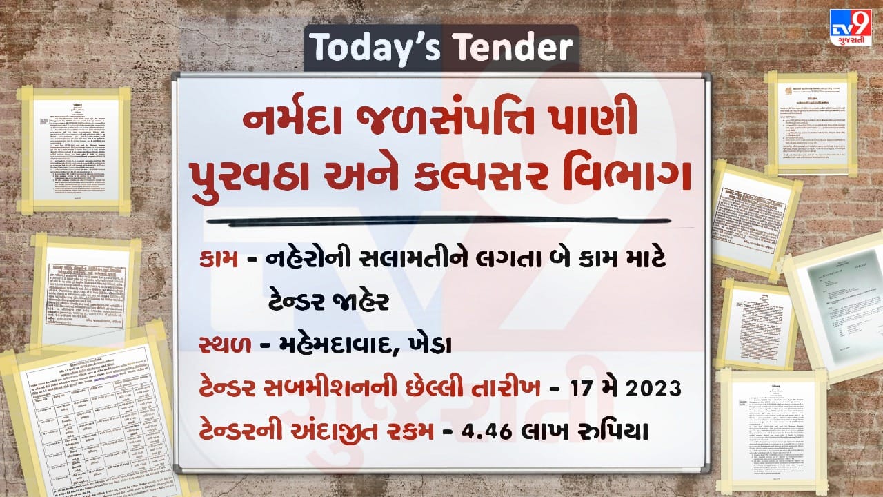 Tender News : આ ટેન્ડરની અંદાજીત કિંમત રુપિયા 4.46 લાખ છે. કોરા ટેન્ડર આપવાની છેલ્લી તારીખ 11 મે 2023 બપોરે 4 કલાક સુધીની છે.