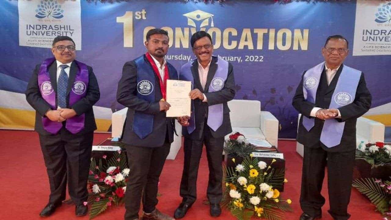 ઈન્દ્રશીલ યુનિવર્સિટી (University) ના બોર્ડ ઑફ મેનેજમેન્ટના ચેરમેન મહેશ્વ સાહુએ (નિવૃત્ત આઈએએસ) પદવીદાન સમારંભમાં ભાગ લઈ વિદ્યાર્થીઓને સંબોધતાં પ્રેસિડેન્ટ ડૉ. રાજીવ એ. મોદીનો સંદેશો વાંચી સંભળાવ્યો હતો. ડૉ. રાજીવ મોદીએ પોતાની શુભેચ્છાઓ પાઠવીને જણાવ્યું હતું કે વિદ્યાર્થીઓએ સંશોધન, અભ્યાસ અને ઉદ્યોગના સુવર્ણ ત્રિકોણ ઉપર ધ્યાન આપવું જોઈએ. ઈન્દ્રશીલ યુનિવર્સિટીનો ઉદ્દેશ તેના હાલના સ્વરૂપમાં આત્મનિર્ભર ભારતના નિર્માણનો છે. વર્તમાન સમયમાં ઉચ્ચ શિક્ષણનું પુનઃગઠન જરૂરી છે અને વર્તમાનને સુસંગત રહેવા માટે અભ્યાસક્રમના માળખામાં સતત સુધારા તથા મૂલ્યવર્ધિત તાલીમનો સમાવેશ કરવો જરૂરી છે. ઈન્દ્રશીલ યુનિવર્સિટી પ્રાદેશિક વિદ્યાર્થીઓને તેમનું જ્ઞાન અને કૌશલ્યમાં વધારો કરવાની સાથે સાથે વિશ્વમાં સ્પર્ધાત્મક સરસાઈ અપાવવાનો ઉદ્દેશ ધરાવે છે.