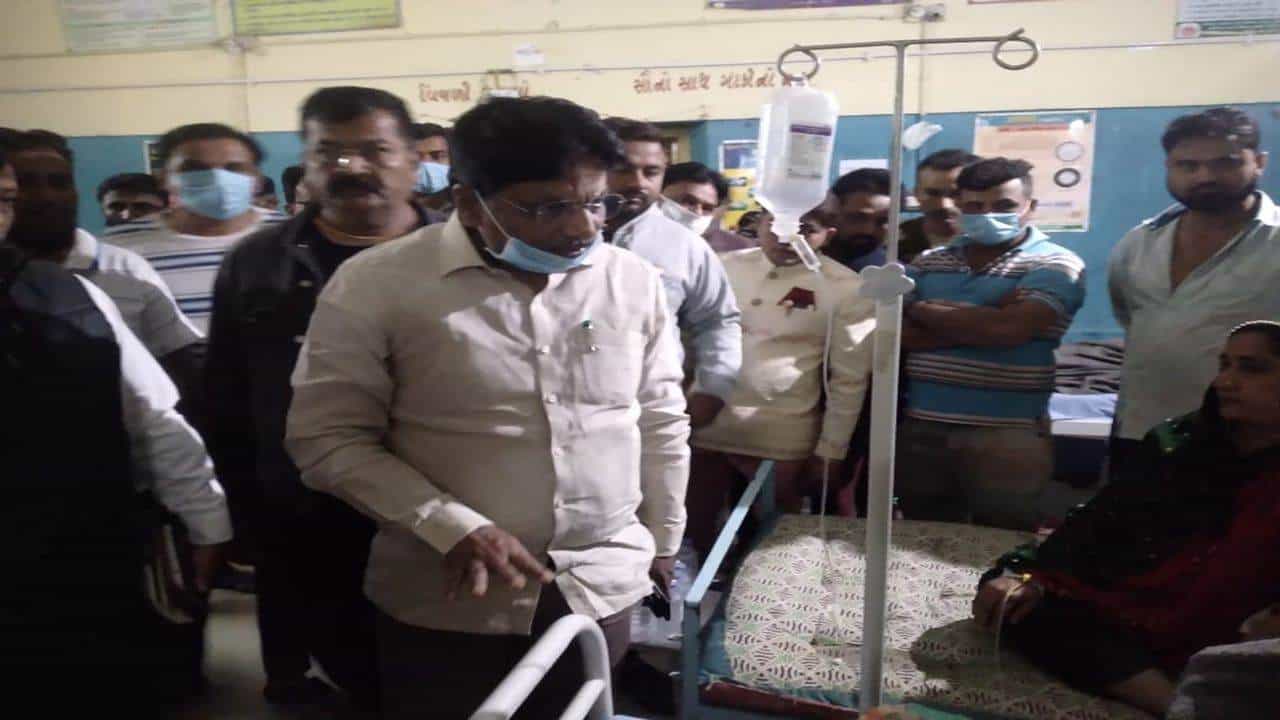 મહેસાણા (Mehsana)માં એક લગ્ન પ્રસંગમાં જમણવાર બાદ 1200થી વધુ લોકોને ફૂડ પોઇઝનિંગ (Food poisoning)થઇ ગયુ છે. દર્દીઓને આસપાસની હોસ્પિટલમાં તાત્કાલિક દાખલ કરવામાં આવ્યા છે. ઘટનાની જાણ થતા જ આરોગ્ય તંત્ર દોડતુ થઇ ગયુ છે. આરોગ્ય પ્રધાન ઋષિકેશ (Health minister Rushikesh Patel) પટેલે પણ દર્દીઓની મુલાકાત લઇને તેમની સ્થિતિ જાણી છે.