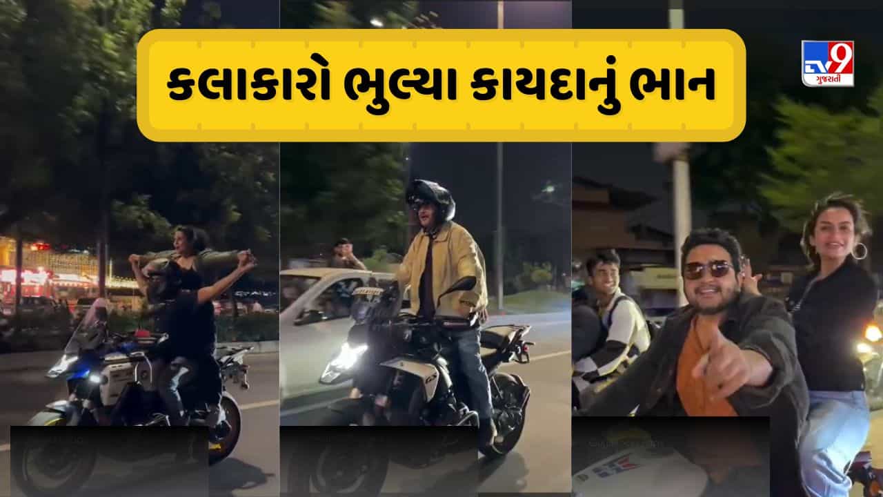 અમદાવાદ શહેરમાં સામાન્ય જનતા દ્વારા ટ્રાફિકના નિયમો તોડવાની ઘટના તો સામે આવતી જ રહેતી હોય છે. જો કે હવે તો ગુજરાતી ફિલ્મના કલાકારો પણ અમદાવાદના રસ્તા પર ટ્રાફિક નિયમોના ખુલ્લેઆમ ધજાગરા કરતા હોય તેવો વીડિયો સામે આવ્યો છે. ગુજરાતી ફિલ્મ ‘મિસરી’ના પ્રમોશન દરમિયાન કેટલાક ગુજરાતી કલાકાર બાઈક પર જીવના જોખમે સ્ટંટબાજી કરી રહ્યા હોવાનો વીડિયો વાયરલ થયો છે. જે મામલે પોલીસે કાર્યવાહી હાથ ધરી છે.