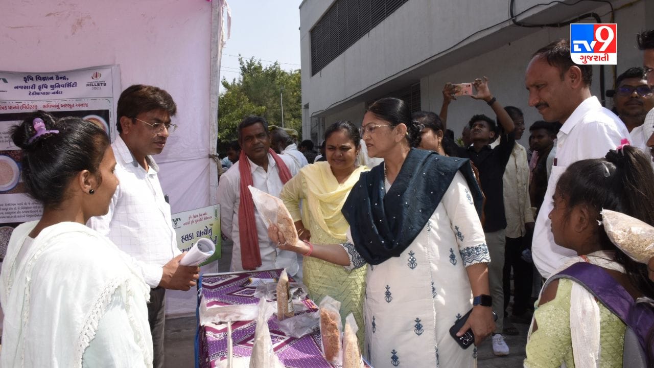 Narmada : આંતરરાષ્ટ્રીય તૃણધાન્ય વર્ષ 2023(international millet year 2023) અંતર્ગત “મિલેટ ડેવલોપમેન્ટ યોજના” હેઠળ નાંદોદમાં તાલુકા કક્ષાનો મેળો અને કૃષિ પ્રદર્શન જનજાગૃતિ ઝુંબેશ હાથ ધરી ખેતીવાડી ખાતા દ્વારા સરાહનીય પ્રયાસો કરવામાં આવી રહ્યાં છે. જેના ભાગરૂપે આજે નાંદોદ ધારાસભ્ય ડૉ. દર્શનાબેન દેશમુખના અધ્યક્ષસ્થાને રાજપીપલાના આંબેડકર ભવન ખાતે પ્રદર્શન કમ કૃષિમેળાનું આયોજન કરવામાં આવ્યું હતું.