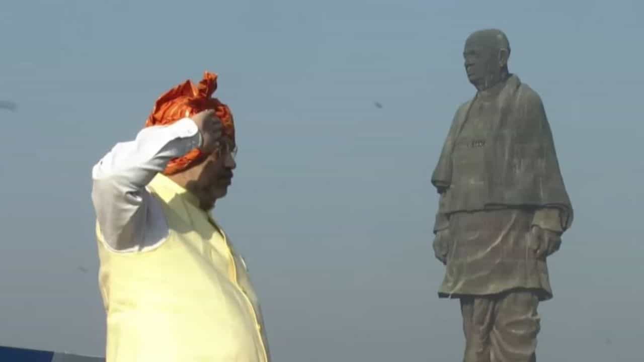 31 ઓક્ટોબર એટલે કે સરદાર પટેલ જન્મજયંતી. આજે અખંડ ભારતના શિલ્પી અને લોખંડી પુરૂષ એવા સરદાર વલ્લભભાઇ પટેલની જન્મ જ્યંતીની ઉજવણી કેવડિયા ખાતે કરવામાં આવી. વિશ્વની સૌથી ઉંચી અને ભારતીયોને ગર્વ કરાવતા સ્ટેચ્યુ ઓફ યુનિટી ખાતે આજના વિશેષ દિવસની (National Unity Day 2021) ઉજવણીનો અનેરો રંગ જોવા મળ્યો. રંગારંગ કાર્યક્રમમાં કેન્દ્રીય ગૃહપ્રધાન અમિત શાહ વિશેષ હાજરી આપી. સરદાર પટેલની વિશાળ પ્રતિમાને પુષ્પાંજલિ અર્પીને અમિત શાહે (Amit Shah at Statue of Unity) રાષ્ટ્રીય એકતા દિવસની પરેડમાં હાજરી આપી. ઉજવણીમાં કેન્દ્રીય ગુહમંત્રી અમિત શાહે સરદાર પટેલની પ્રતિનાના ચરણની પૂજા કરી. આ દરમિયાન સરદારની પ્રતિમા પર હેલિકોપ્ટરથી પુષ્પવર્ષા કરવામાં આવી. તેમજ કાર્યક્રમમાં અમિત શાહે એકતા પરેડની સલામી ઝીલી. સાથે જ આ કાર્યક્રમમાં મુખ્યમંત્રી ભૂપેન્દ્ર પટેલ પણ જોડાયા હતા.