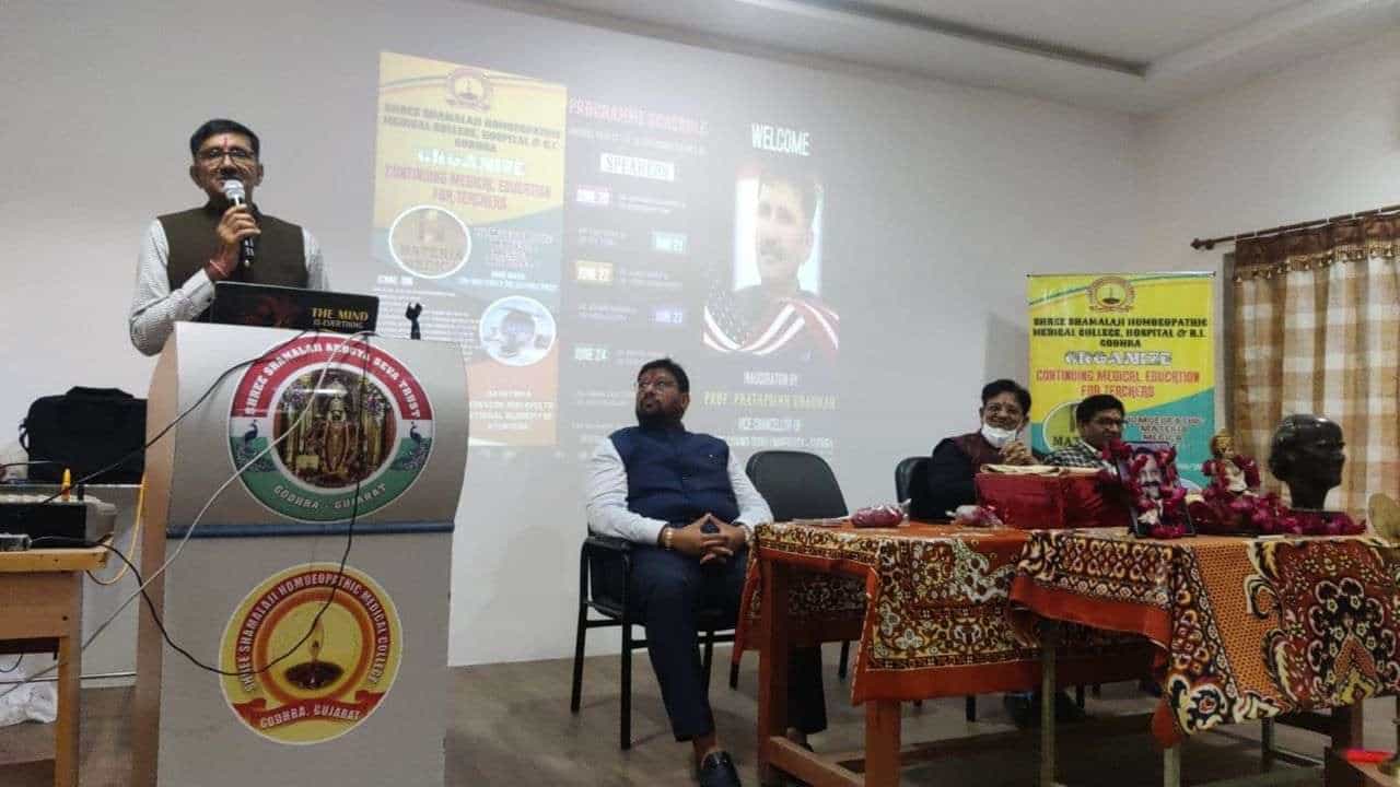 પંચમહાલ (Panchmahal) જિલ્લાના ગોધરા શહેરની શામળાજી હોમીઓપેથીક મેડિકલ કોલેજમાં (Shamlaji Homoeopathic Medical College) 20 જૂનથી 25 જૂન સુધી ગુજરાત તેમજ અન્ય રાજ્યોમાંથી આવેલા સ્પીકર દ્વારા સી.એમ.ઈ. (Continue Medical Education)નું આયોજન કરવામાં આવ્યું છે. જેનો શુભારંભ આજ રોજ ગોવિંદ ગુરુ યુનિવર્સિટીનાં કુલપતિ, સિન્ડિકેટ મેમ્બર તેમજ શામળાજી કોલેજના વાઇસ પ્રેસિડેન્ટ દ્વારા કરવામાં આવ્યો હતો.