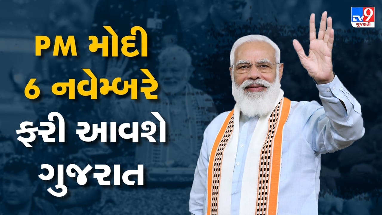 PM નરેન્દ્ર મોદી ફરી એકવાર ગુજરાત આવશે. તેઓ 6 નવેમ્બરે ગુજરાતના એક દિવસીય પ્રવાસે આવવાના હોય તેવા સમાચાર સામે આવી રહ્યા છે.